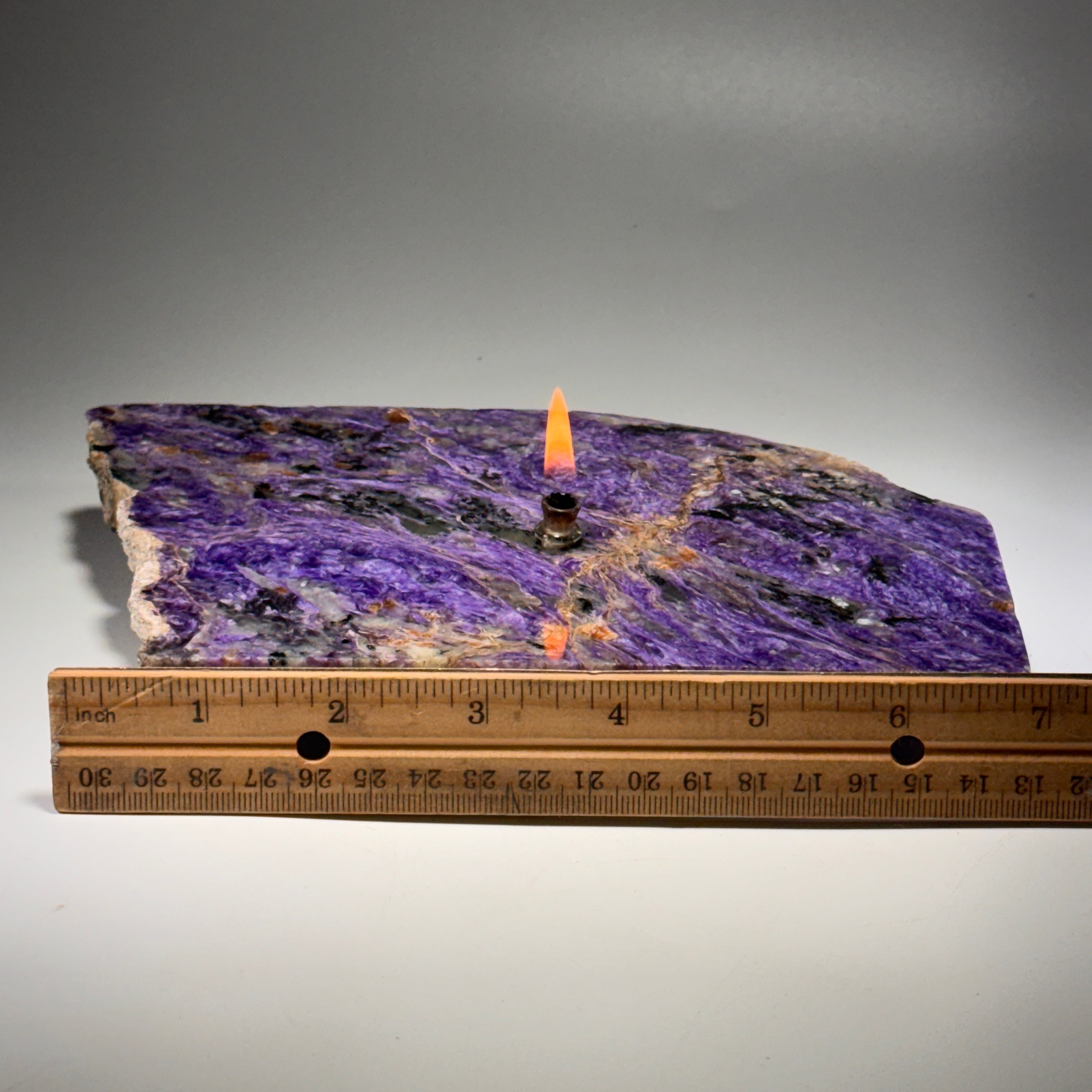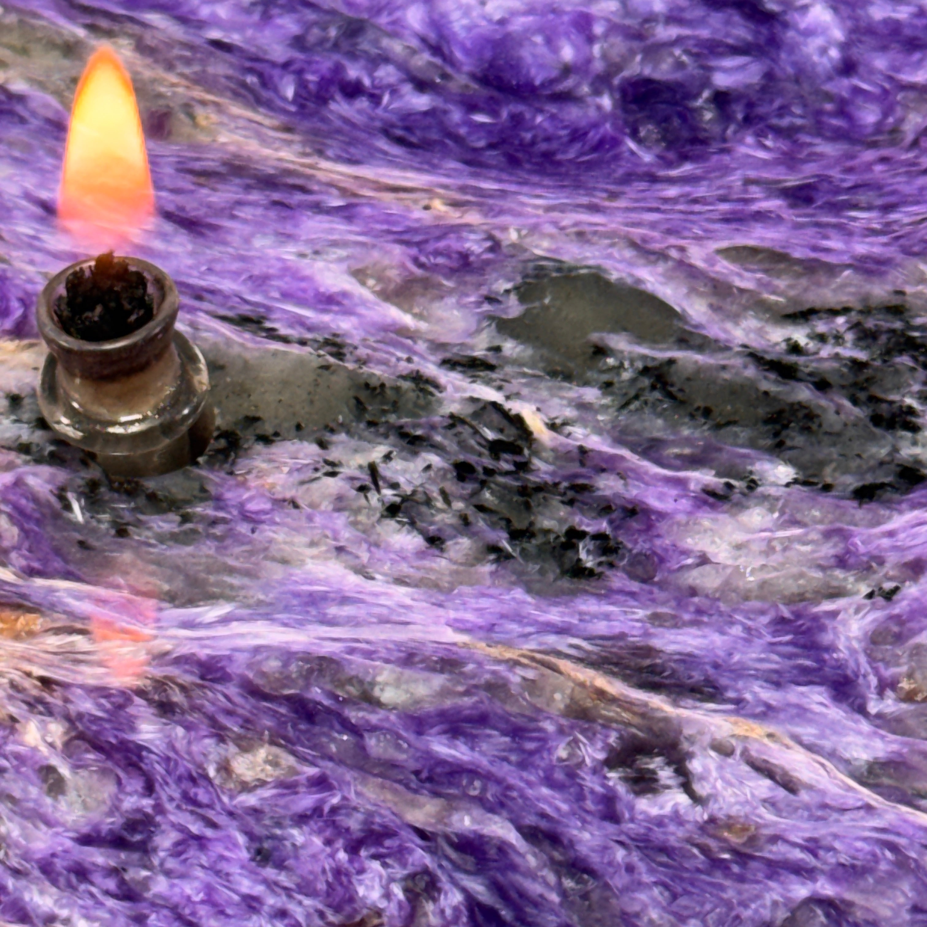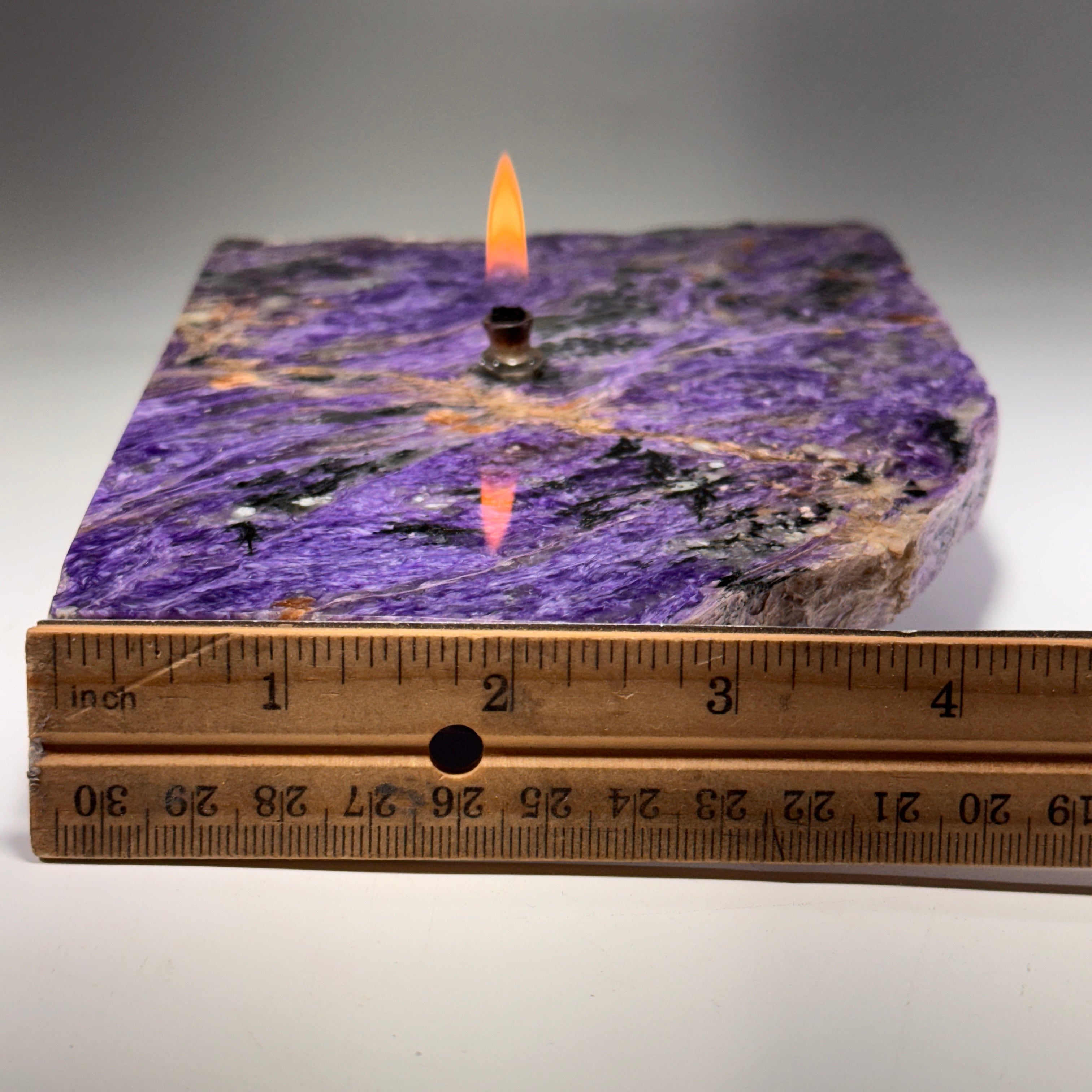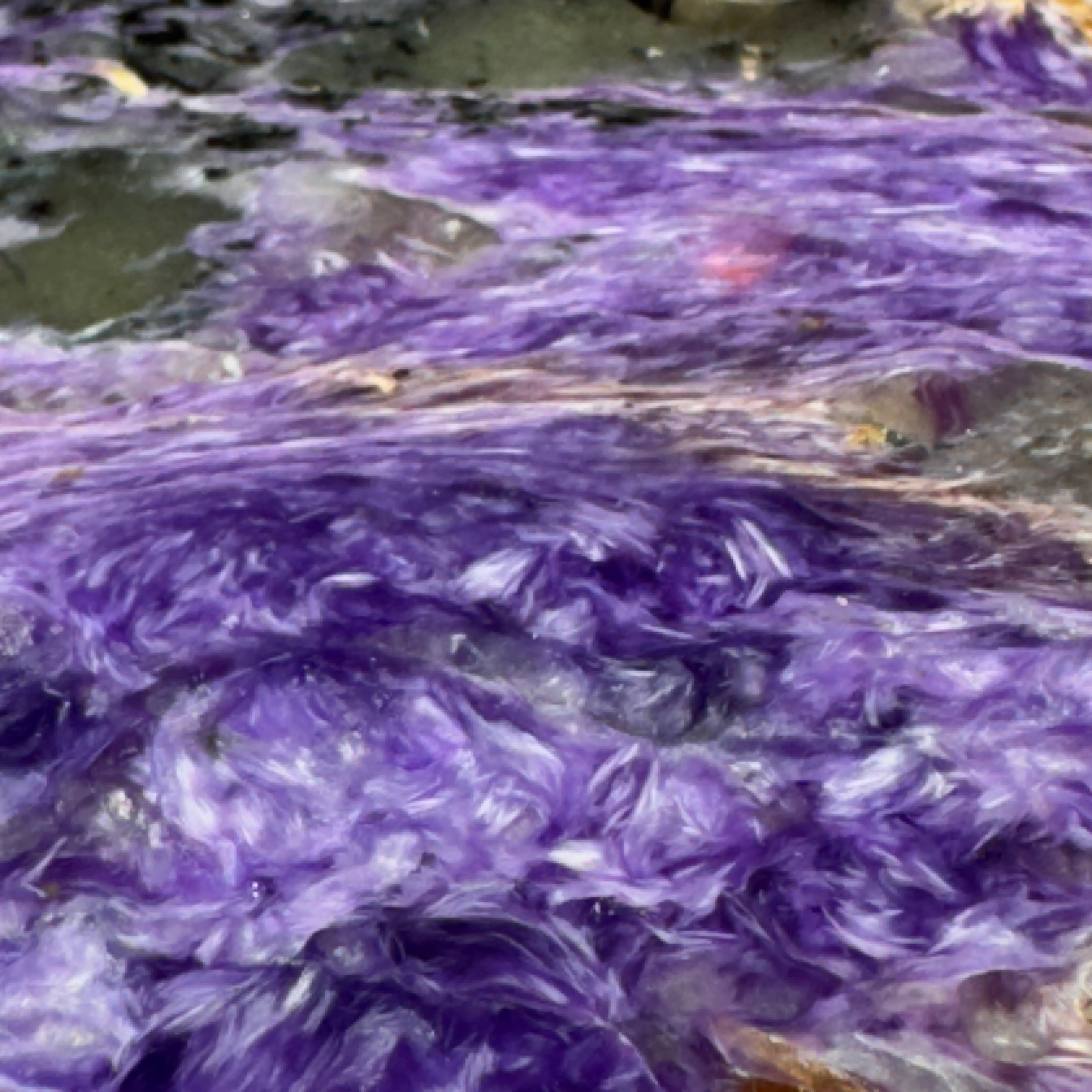 Check out the mesmerizing beauty of Siberian charoite crystal slab transformed into a functional work of art.